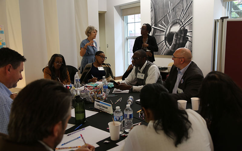 Five multidisciplinary teams engaged in an equity-centered design thinking process to develop actionable prototypes addressing these cancer types. Teams collaborated to identify barriers to care and create solutions aimed at eliminating disparities in cancer outcomes for marginalized communities.