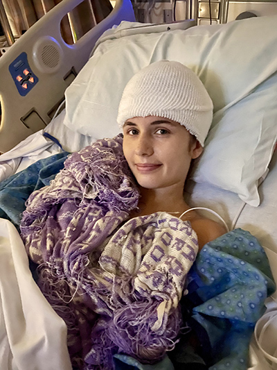 The day of surgery was frightening. It was my first time ever in an operating room. I wanted my mom to come with me, but I was lucky enough to have Lisa Scarpace, program manager at the brain tumor center, holding my hand as they started anesthesia – just like my mom would.
