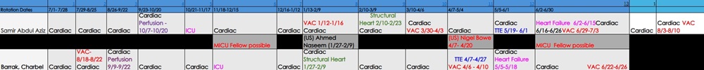 Fellows are required to undergo the following rotations during the course of their training. The PD meets with the fellows to elective options during the fellow general orientation for selection of elective rotations and at the 6-month semi-annual review