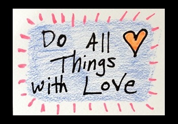 Choose a mantra or affirmation to work with for the day and create a piece of artwork that you can carry with you. You can use an index card or postcard size piece of paper and write your mantra / affirmation in the center. Use your markers or pens to create a beautiful background and design around your statement while focusing on the feeling the statement brings you. Continue to really feel what the statement says. When you have completed your notecard, put it up somewhere you will see it everyday or carry it with you to periodically look at throughout the day.